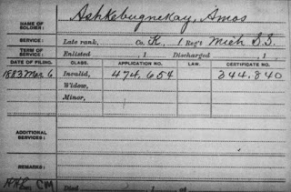 1890 Federal Census, Veterans Schedules - Custer Township, Mason county, line 5 Amos Ash-bu-me-ka