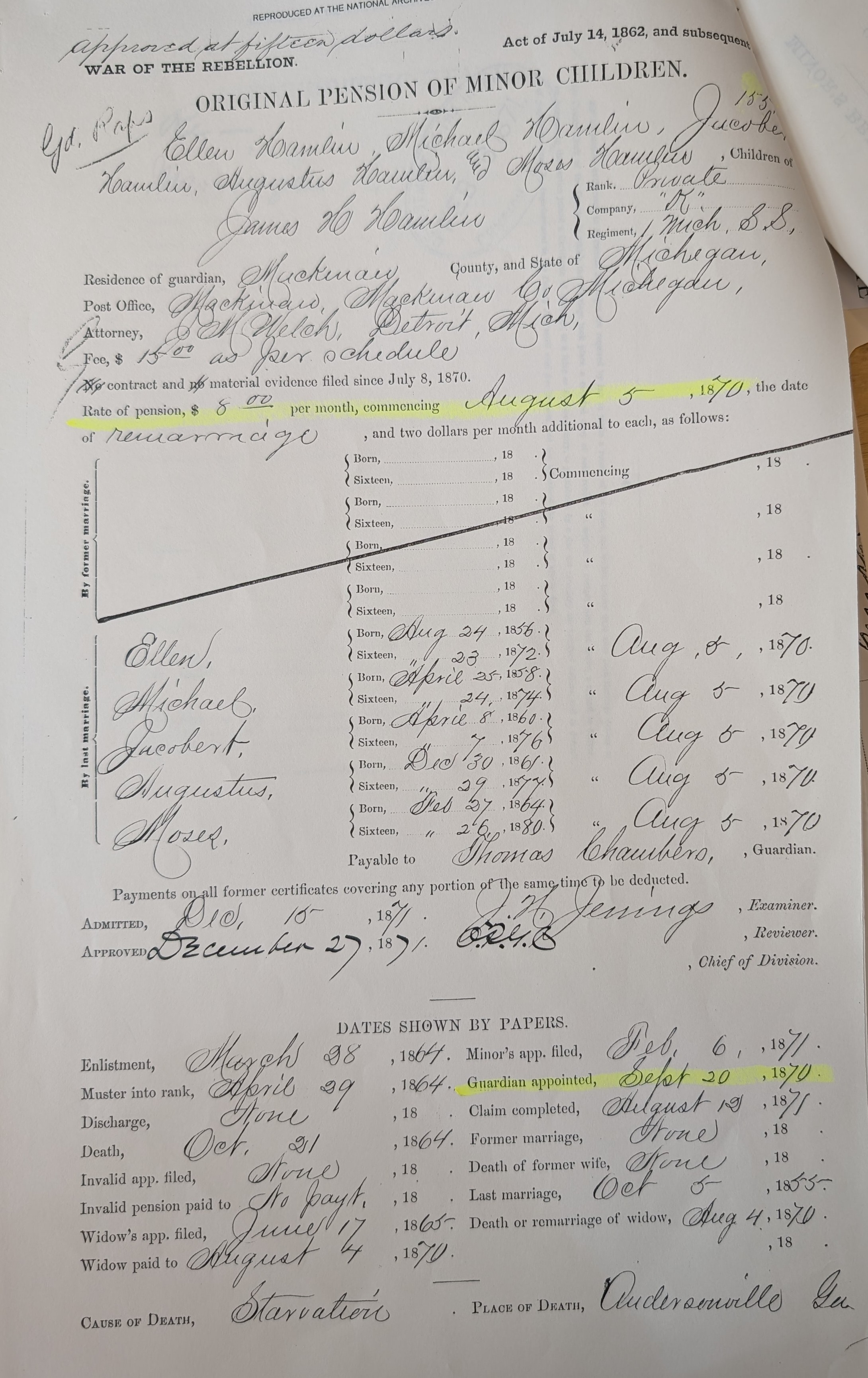 Copied in the order found, at the Clarke Historical Library, Mt. Pleasant, Michigan, on 2 Oct 2024, from the Quita V. Shier collection. Service and widow's pension records